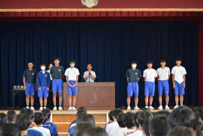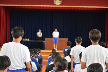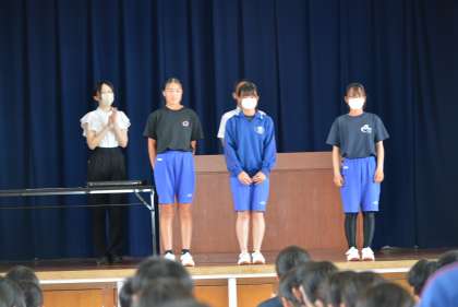 全校集会での表彰伝達の様子です。