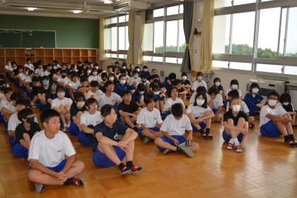 5時間目には1年生が集会室で学年集会を行いました。学年の各先生から、夏休み中の学習のことや生活のことについての話がありました。いよいよ夏休みが目前ですね。