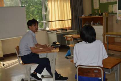 事前に実施した「ふれあいアンケート」をもとに、学習や生活、進路、友人関係などについて、一人一人と面談を行っています。悩みや不安があれば、すぐに対応していきます。