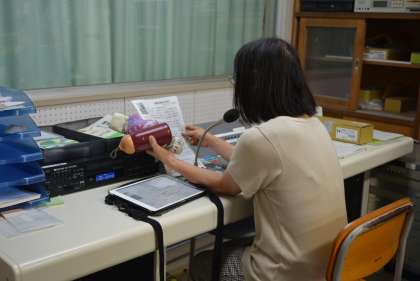 毎週金曜日には図書館司書が来校して、図書館の整備など様々な活動をしています。今日は、蔵書点検、昼の放送、授業支援を行っていただきました。