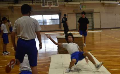 22学級、体育の「マット運動」の授業の様子です。