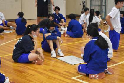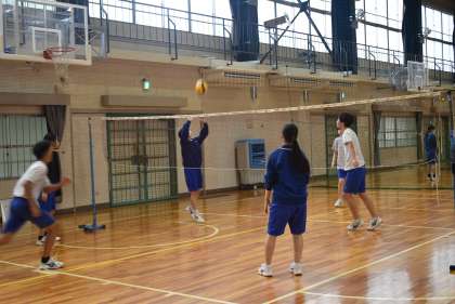 32学級の体育のバレーボールの授業の様子です。