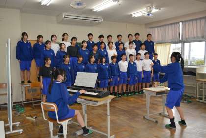 今日から後期が始まり、合唱コンクールまであと3日となりました。どの学級も今まで以上に練習に熱が入っているように感じます。学級同士の歌い合わせも頻繁に行われており、先輩の歌声や姿から後輩が学ぶという場面が当たり前のようになっています。