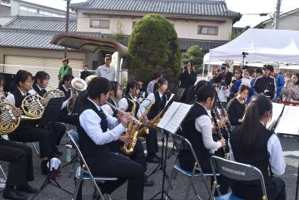 オープニングで演奏を披露している吹奏楽部の様子です。