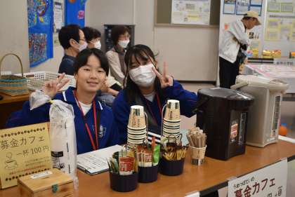 梅坪台交流館ふれあい祭りのボランティアで活躍している生徒の様子です。