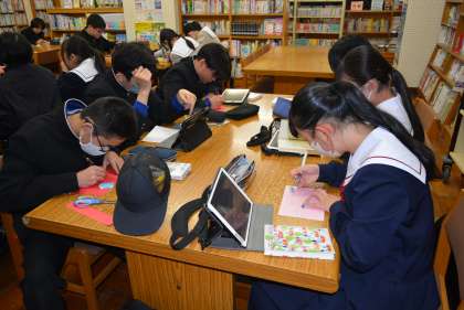 本日の6時間目は委員会活動でした。先月に行った生徒集会の際に発表した計画に従って活動を進めています。図書委員会では、人権週間に向けて提示する本のポップを作っていました。3年リーダー会では、リーダー会主催で行う討論会の準備をしていました。