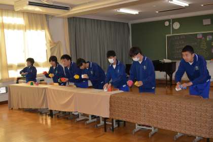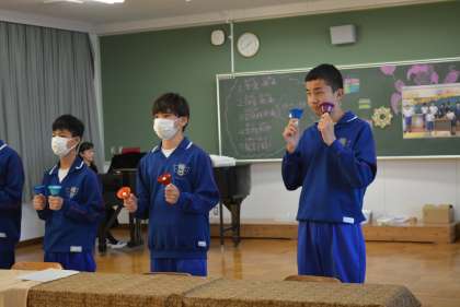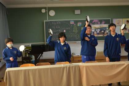 保護者の方々、梅坪小の小学校6年生の児童を招待し、今まで練習を重ねてきたタップスとハンドベル、歌を披露したり、ストラックアウトを一緒にやったり、羊毛ストラップ作りを一緒に行ったり、プレゼントを渡したりと、楽しい時間を過ごしました。最後は、6年生と一緒に写真撮影も行いました。来校していただいた保護者の方々、梅坪小6年生の皆さん、ありがとうございました。