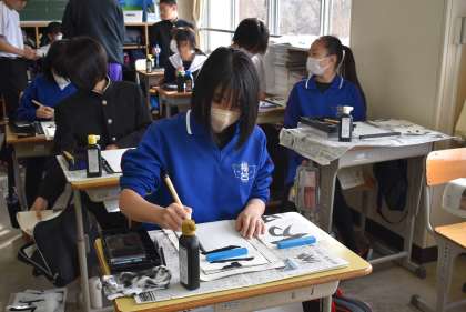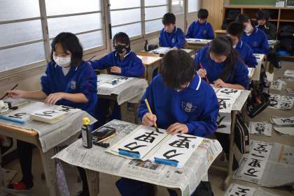 11学級の書き初めの様子です。
