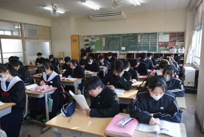 「漢詩にふれよう」ということで、全員で漢詩を読んだ後、教科書の説明を順に読むことで、その内容を学んでいました。