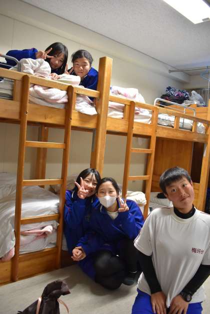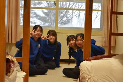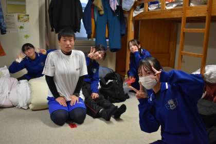 スキー研修後の部屋での様子です。