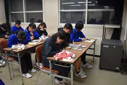 保護者からの手紙を読んだ後、保護者に手紙を書いている様子です。