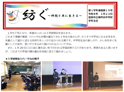 1年学年通信「紡ぐ〜仲間と共に生きる〜」第19号
