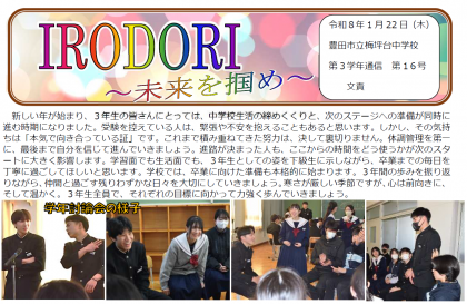 3年学年通信「IRODORI〜未来を掴め〜」第16号