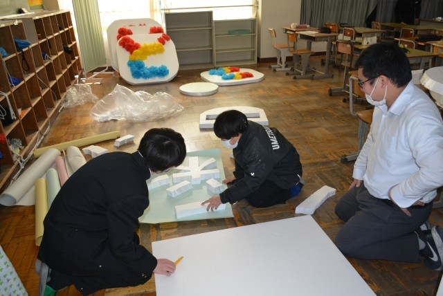 2/19(木)5限 卒業を祝う会準備の様子です(1・2年生)