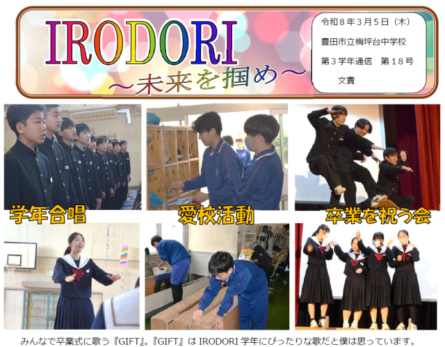 3年学年通信「IRODORI〜未来を掴め〜」第18号