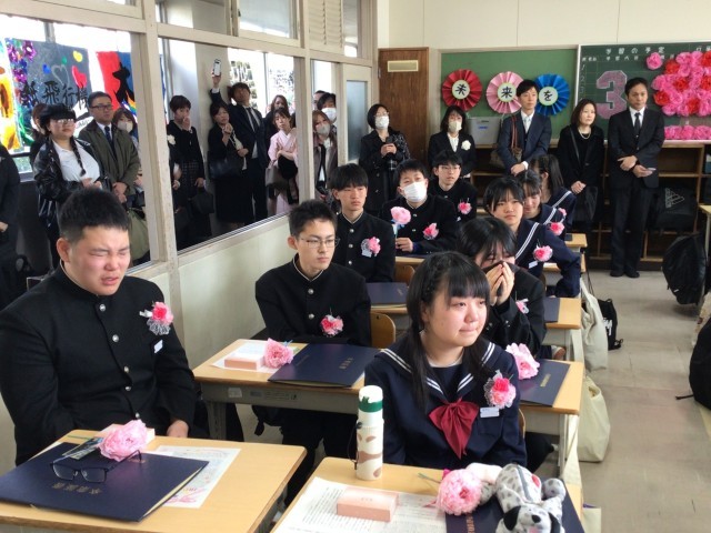 卒業証書授与式後、卒業生は最後の学級活動を行いました。最後の大切な時間を、級友や先生とともに過ごしました。笑いあり、涙あり、そして「次は卒業式で会いましょう」という言葉も聞かれました。