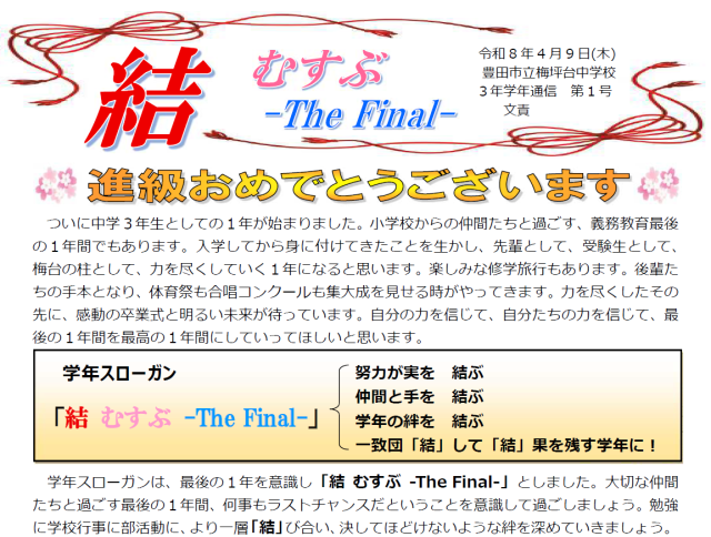 3年学年通信「結 むすぶ -The Final-」第1号