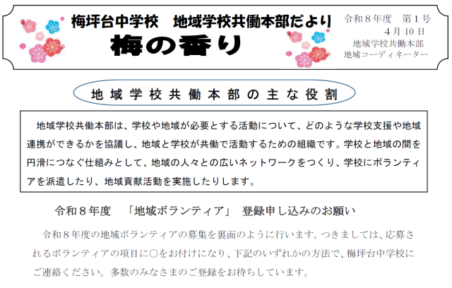 地域学校共働本部だより「梅の香り」第1号