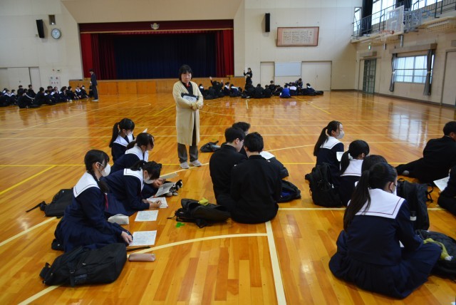 今日の3時間目に地区集会を行いました。各地区の生徒で集まり、メンバーの確認をしたり、通学路の確認をしたりした後、登下校についての指導を行いました。