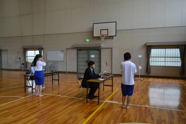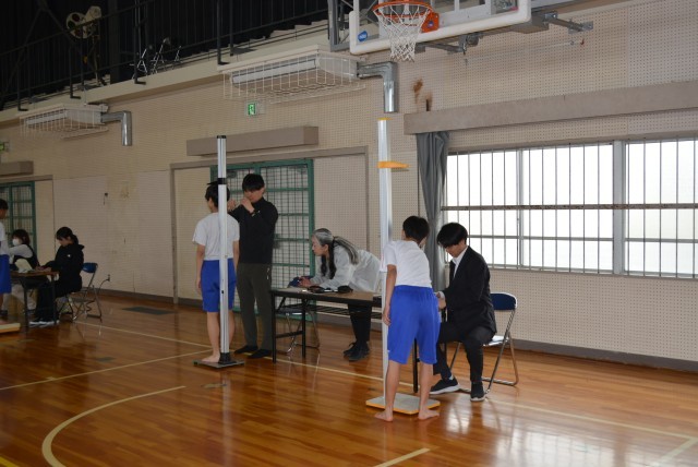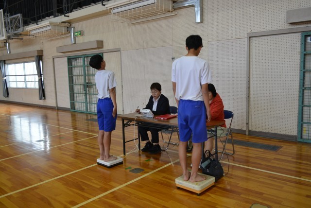 今日の1時間目から4時間目にかけて、各学年が順に身体測定・視力、聴力検査・個人写真撮影を行いました。どの学年も始めに全体で説明を聞いた後、学級ごとにそれぞれの場所を回って測定や検査を行いました。1年間でどれだけ発育したのか、視力が低下していないか等、生徒が考えるきっかけになればと思います。なお、聴力検査を行ったのは1・3年のみです。また、個人写真は今後配布する身分証明書に使用します。