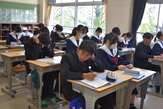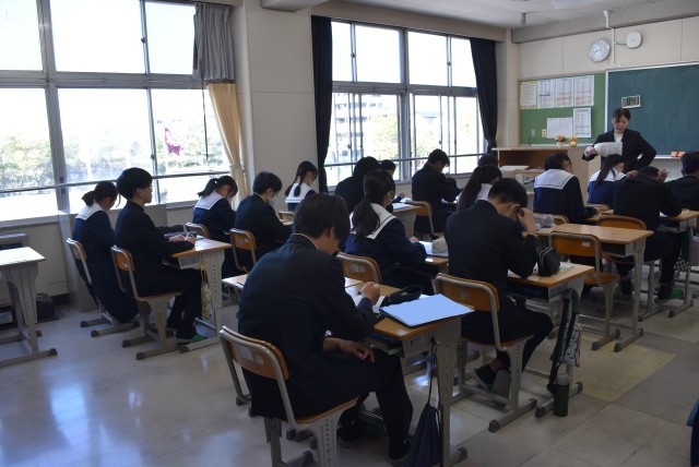授業開きにあたって、数学の特性や授業の進め方などを確認しています。