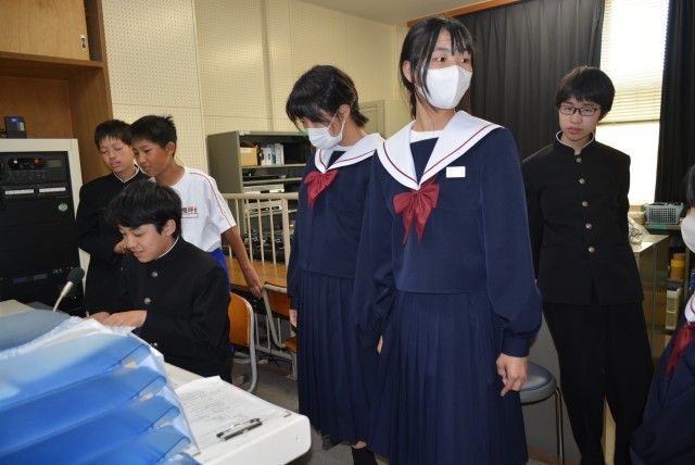 5時間目に認証された委員長や副委員長を中心に、前期のスローガンや活動内容を考えていました。中でも、広報委員会では、給食時の校内放送で使用する放送卓の使い方を学んでいました。
