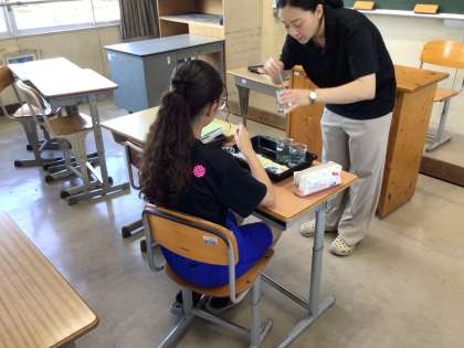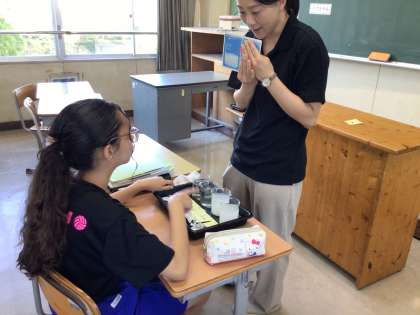 理科の日本語指導の研究授業を行いました。水溶液の性質について、具体物を観察したり、動画で変化を確認したりして、理科の学習に必要な日本語を学びました。日本語の表現の難しさに苦労しながらも、話型を使ったり、学んだ理科用語を使ったりして、物質がとける様子を説明することができました。