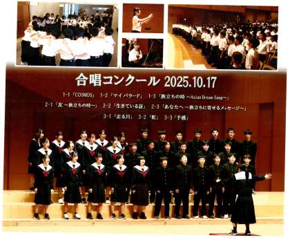 本年度、入学式から始まり、体育祭、修学旅行、合唱コンクールと大きな行事を実施する中で、生徒たちが生き生きと活動し自立心を高めている姿、感動して涙を流している姿を見ることができました。このように様々な行事を実施することができたのも、保護者の皆様、地域の皆様が学校を支えていただいたおかげです。ありがとうございました。