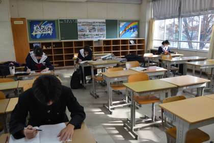 懇談の開始時刻が早い生徒が、少人数教室で静かに学習をして待っていました。 -