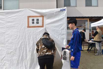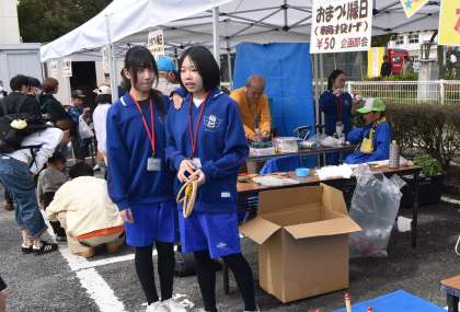 梅坪台交流館ふれあい祭りのボランティアで活躍している生徒の様子です。
