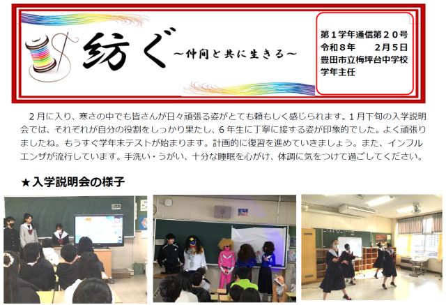 1年学年通信「紡ぐ〜仲間と共に生きる〜」第20号