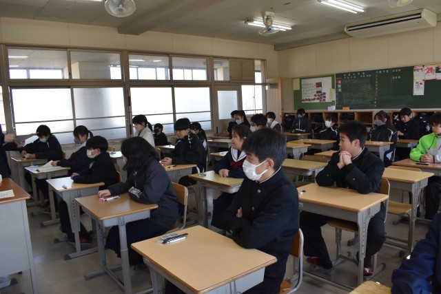 学習診断テストが終わり、いよいよ学年末テストが今週末に迫りました。納得いくまで教科書の見直しや課題のやり込みを行い、2年生最後のテストを乗り越えましょう。2年生の内に良い学習習慣を身に付けておくことが、受験生となった時に役に立ちます。自然教室での立志の誓いも思い出し、自分の中の力を最大限に引き出していってほしいと思います。
