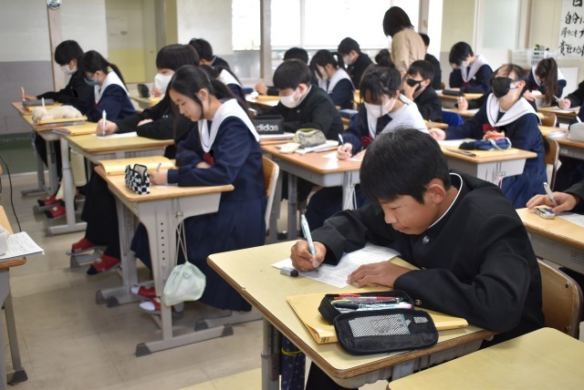 火曜日の英語に引き続き、3年生が全国学力・学習状況調査の国語と数学を1・2時間目に受験しました。生徒たちは緊張しながらも一生懸命に受検していました。