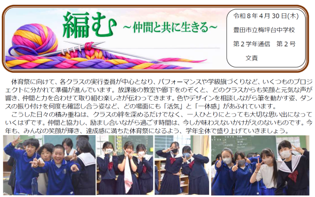 • 2年学年通信「編む~仲間と共に生きる~」第2号
