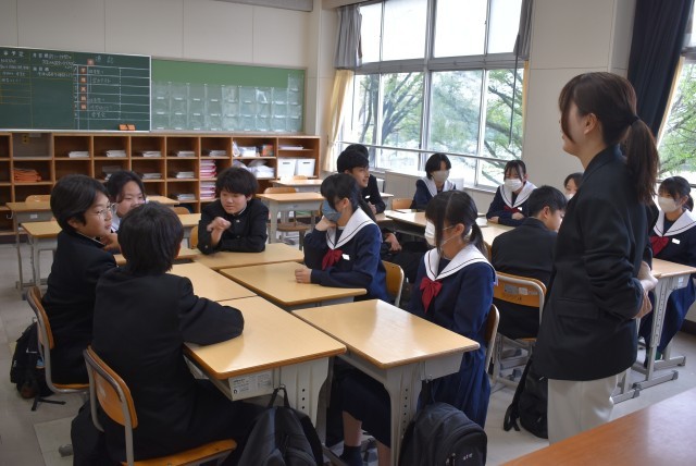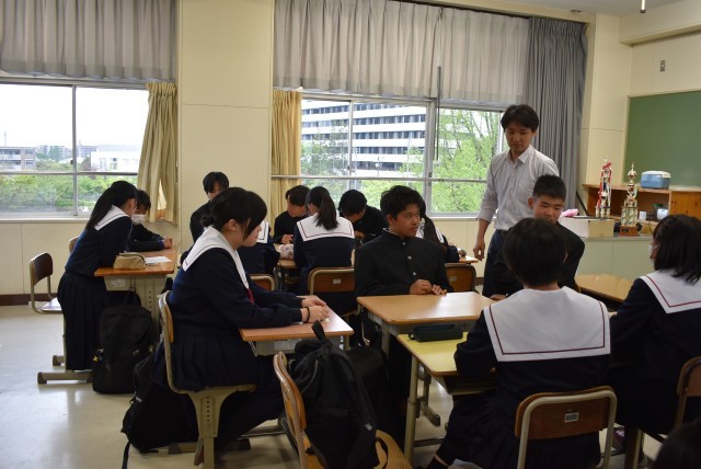 1年生の教室での生徒集会の様子です。