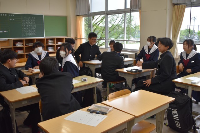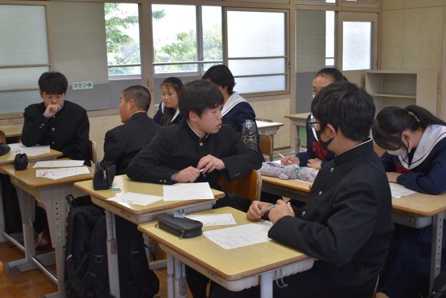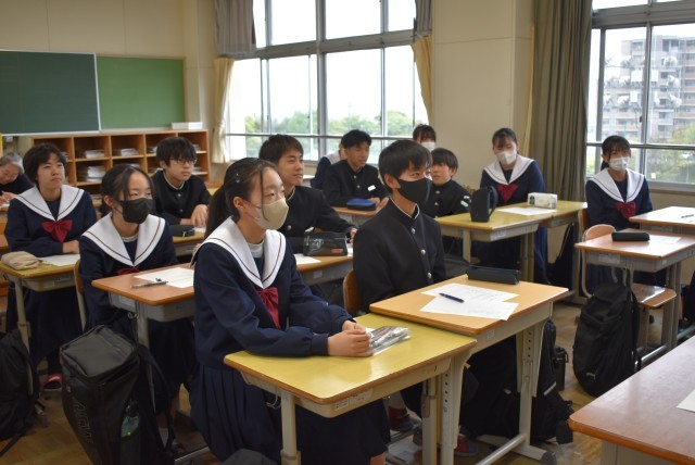 2年生の教室での生徒集会の様子です。