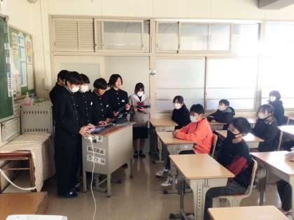 入学説明会での1年生の取組で、6年生に中学校の様子がよく伝わったのではないかと思います。発表している1年生を見て、この1年での成長を強く感じました。