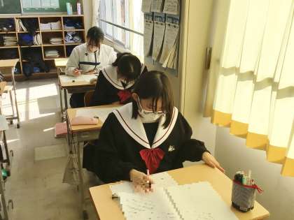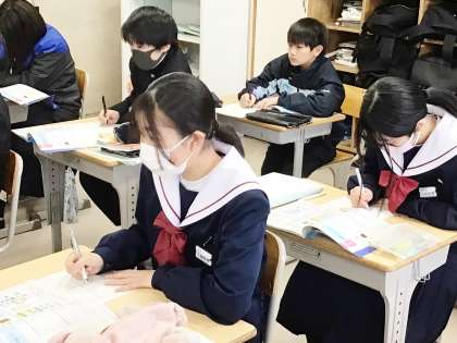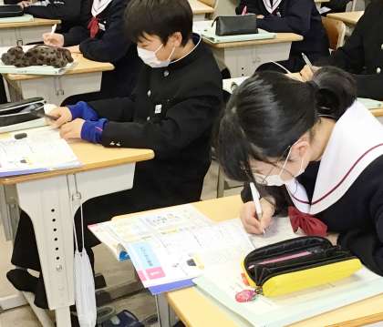 32学級は、国語の授業の様子です。入試対策プリントの問題を集中して解いていました。