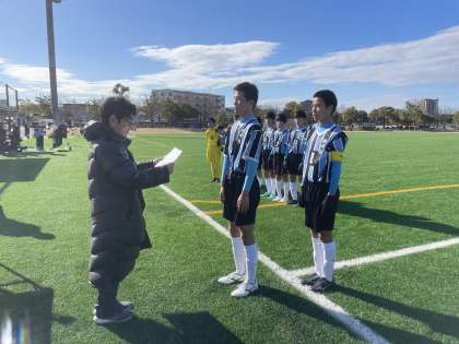 以下の写真は、サッカー部の表彰の様子です。