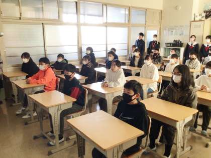 中学校の生活・学習・部活動紹介では、1年生は、6年生にパワーポイントで映像を流しながら堂々と発表を行っていました。また、聞いている6年生も集中して聞いたり、質問をしたりと、意欲的に参加していてすばらしいと思いました。