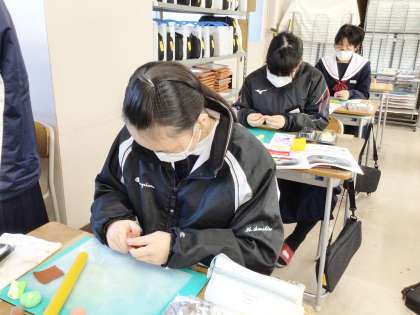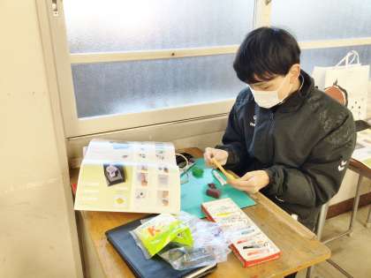 22学級は、美術の「和菓子職人になろう!」の授業の様子です。落雁、桜餅など、自分が作ってみたい和菓子を粘土を使って作成しています。本物そっくりの和菓子を作ろうと、一生懸命取り組んでいました。