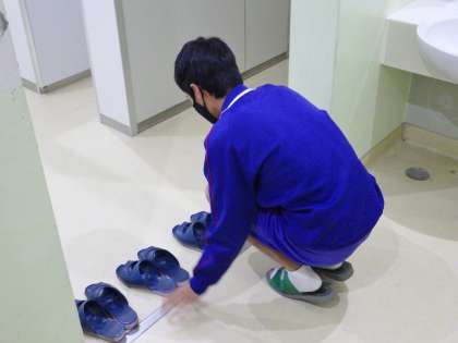 廊下を歩いていると、トイレのスリッパの整頓をしている生徒を見かけました。その生徒は、スリッパの整頓を行うと、何事もなかったかのように教室に戻っていきました。心温まる行動に、とても爽やかな気持ちになりました。