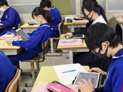 21学級は、社会の「日本の諸地域」の授業の様子です。学習用タブレットに映し出された雨温図を見て、気候の特徴を確認していました。