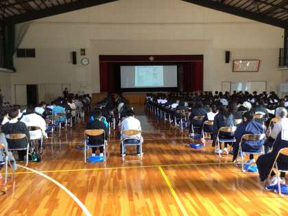 本日、自然教室説明会・進路説明会を体育館で行いました。ご多用の中、ご来校ありがとうございました。