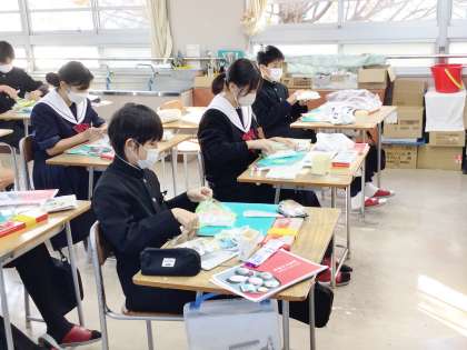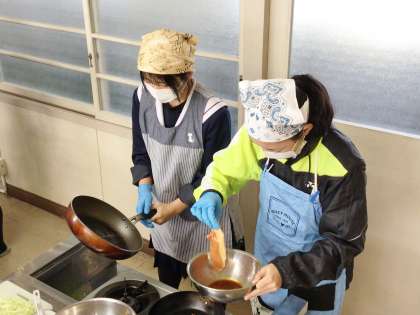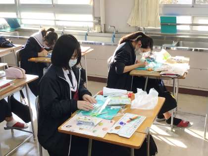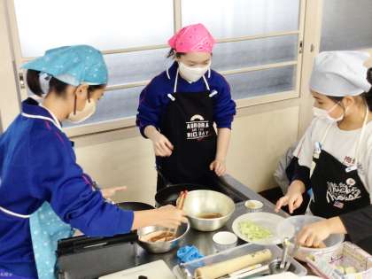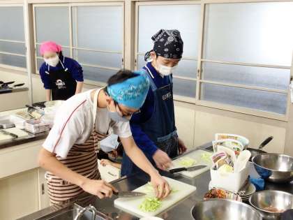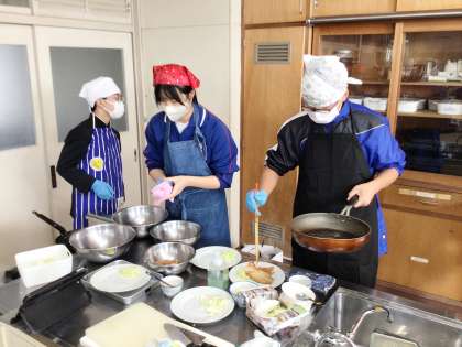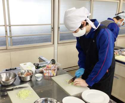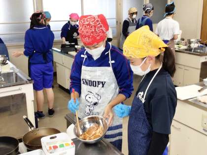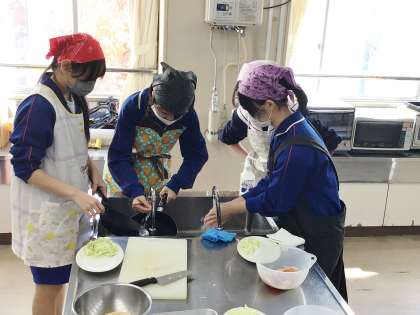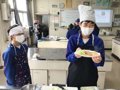 1,2限に21学級、3,4限に23学級が本年度2回目の調理実習を行いました。(22学級は来週行います)今回の調理実習は、「豚肉の生姜焼き」と「キャベツのせん切り」です。生徒は、2回目ということもあり、前回より手際よく調理を行っていました。調理後、「キャベツのせん切りはやったことがなかったので、難しかった」「生姜をすりおろすのは楽しかった」と感想を言っていました。