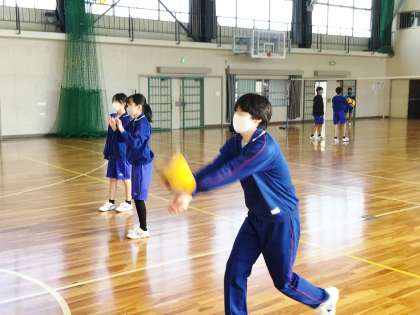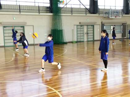 23学級は、体育の「バレーボール」の授業の様子です。アンダーハンドパスの練習を行っていました。練習を重ねるうちに、ボールがきれいに上がるようになってきました。