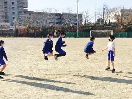 12学級は、体育の授業の様子です。大縄を行っていました。最初は、うまく跳べませんでしたが、後半は呼吸を合わせて何回も続けて跳べるようになってきました。