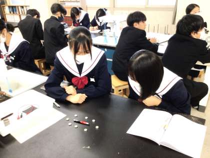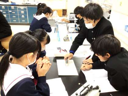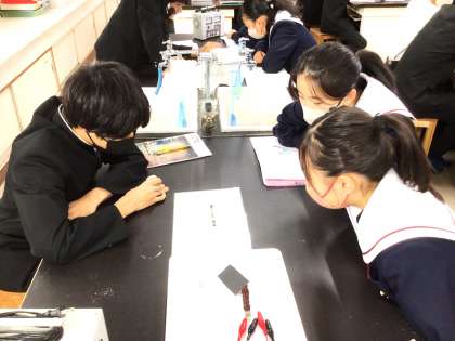 22学級は、理科の「電流と磁界」の授業の様子です。磁界の様子について、様々な実験を行いながら調べていました。