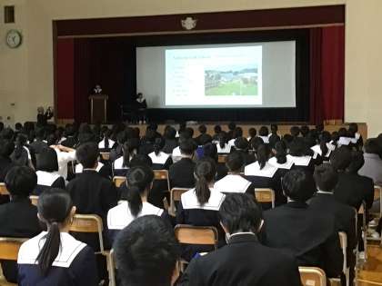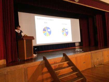 海外派遣参加生徒は、研究テーマについての考察や現地校の学校や生徒の様子で感じたことを資料や写真を用いて堂々と発表していました。聞き手を引き付けるすばらしい発表でした。