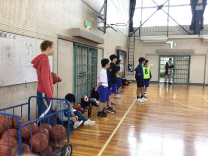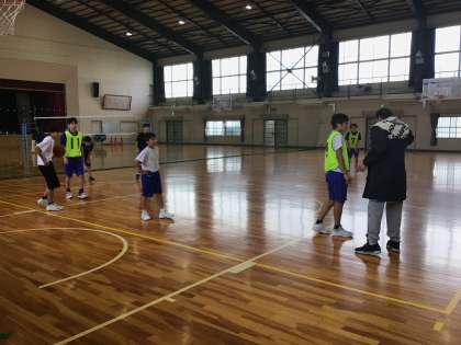 男子バスケットボール部の練習の様子です。地域部活動指導者の方が熱心に指導してくださっていました。